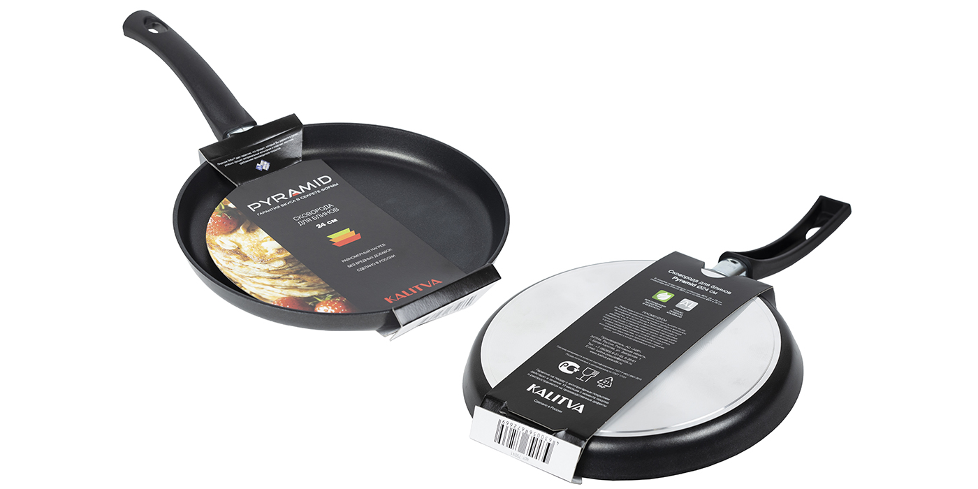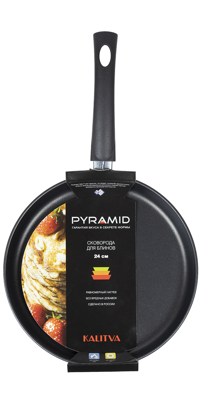 Блинница из линейки Pyramid диаметром 24 см с эргономичной ручкой без крышки – высокотехнологичная и стильная посуда для жарки блинов с удобным бортом новой формы.